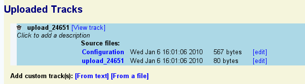 If the remote track was successfully imported, a description of the remote track similar to the previous section's listing of uploaded tracks will appear.